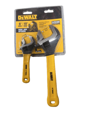 This 2-pack DEWALT Dip Grip Adjustable Wrench set has Grip Armor coating to help prevent the vinyl grip from peeling off. This vinyl grip also helps provide control in wet environments, perfect for outdoor use. Both wrenches have a wide jaw capacity to cover a range of sizes.