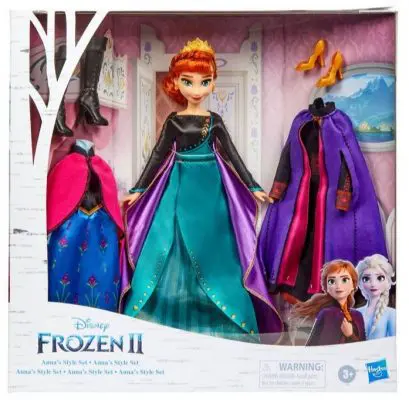 ANNA FROM THE DISNEY FROZEN MOVIES: This fashion doll comes with 3 movie-inspired looks, 2 outfits featured in Disney’s Frozen 2 and 1 outfit featured in Disney’s first Frozen movie