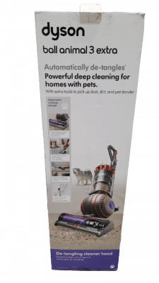 The Dyson Ball Animal 3 Extra deep cleans your whole home- and your pet. The vacuum tackles tough tasks easily, making it ideal for pet owners and parents. The Groom tool removes loose hairs, dead skin, and allergens directly from your pet- before they spread them around your home. 2 New de-tangling technology automatically clears wrapped hair from the brush bar as it cleans. With Ball technology and 3 cleaning modes, the Dyson Ball Animal 3 Extra smoothly navigates around furniture and obstacles with a simple turn of the wrist, for precise cleaning. With no loss of suction, five Dyson-engineered accessories, and up to a total of 50 ft. reach, the vacuum gets up high, down low and everywhere in between for a whole-home deep clean.