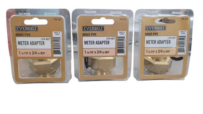 Attach Everbilt exclusive lead-free brass pipe water meter adapter to your home water line or meter to easily repair leaky connections. This two-piece adapter features female- and male-threaded ends and should be used with iron, copper or brass pipe. This adapter has a maximum working pressure of 1200 psi. Offering rust-repelling construction and an O-ring gasket, this fitting conforms to NSF 61 and 372 and is registered in Mass.