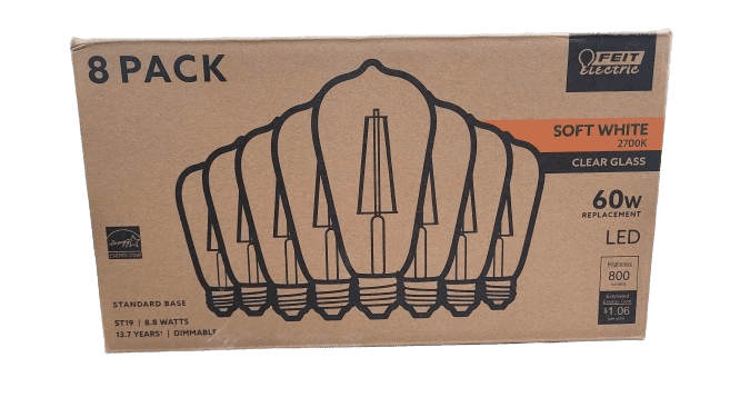 Feit Electric 8 Pack 60w Soft White 2700K Clear Glass ST19 Dimmable LED Bulbs