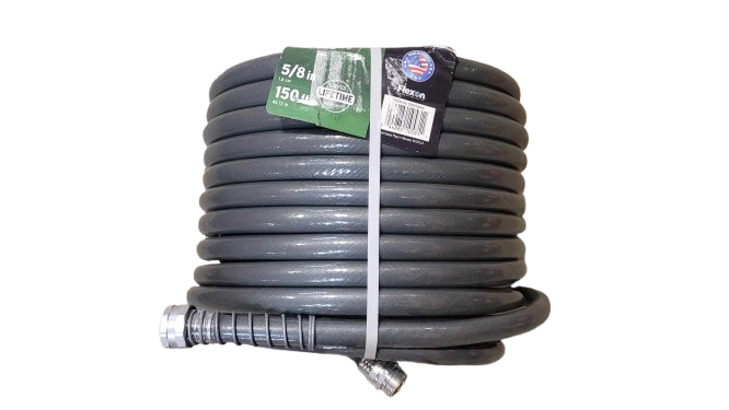 Keep your lawn, garden, and outdoor spaces hydrated with the Flexon 5/8 in. Dia x 150 ft. Supreme Duty Water Hose. Built for durability and performance, this heavy-duty garden hose is designed to handle tough watering tasks with ease. Its supreme-duty construction ensures long-lasting use, while the crush-resistant aluminum couplings provide a secure, leak-free connection. The 150-foot length offers extended reach, making it ideal for large yards, landscaping projects, and commercial applications.This kink-resistant hose maintains flexibility in various weather conditions, allowing for hassle-free maneuverability around trees, garden beds, and outdoor equipment. Whether you’re watering plants, washing vehicles, or tackling heavy-duty cleaning tasks, the Flexon Supreme Duty Water Hose delivers consistent water flow and reliable performance. Upgrade your watering routine with a hose designed for strength, flexibility, and convenience. Upgrade your outdoor watering experience with the Flexon 150 ft. Supreme Duty Water Hose-a perfect blend of strength, flexibility, and convenience!