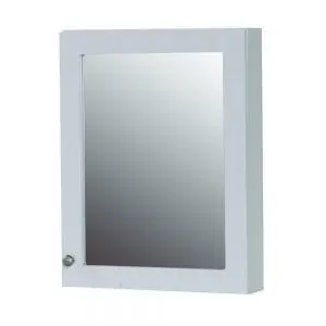 The Glacier Bay Del Mar 20 in. W Medicine Cabinet in White has a traditional design that will lend a classic look to your bath or powder room decor. Featuring 2 adjustable shelves for ample storage space, this cabinet’s fresh white finish is beautifully accented with brushed nickel hardware and its rectangular mirror has a large viewing area. Perfect for a smaller space, this cabinet has durable thermofoil construction and coordinates with the Del Mar Vanity and other pieces from the Del Mar Collection. Limited lifetime warranty.