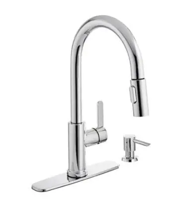 The Paulina Single-Handle Pull-Down Sprayer Kitchen Faucet with Soap Dispenser in Chrome is the perfect faucet for your Farmhouse Style kitchen or to complement any other decor style. Easy to use with a single handle design, this faucet has a convenient pull-down spray wand with 2-spray modes and a long reach that makes easy work of kitchen tasks. The pull-down sprayer features an aerated spray and a new TurboSpray that is exclusive to Glacier Bay. Featuring a ceramic disc cartridge for drip free performance, the 1.8 GPM flow rate also provides excellent water pressure for your cleaning needs. This kitchen faucet also includes the exclusive FastMount mounting system to make installation quicker and easier.