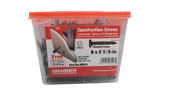 Grabber’s drywall screws are used to attach drywall or sheetrock to wooden studs. The sharp point pierces drywall and the sharp bugle head tapers down to prevent the tearing of drywalls paper cover. The spaced threads make driving through the material and wood simple. Comes in various lengths and finishes offering some corrosion protection.