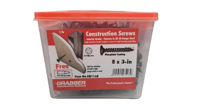 Grabber’s drywall screws are used to attach drywall or sheetrock to wooden studs. The sharp point pierces drywall and the sharp bugle head tapers down to prevent the tearing of drywalls paper cover. The spaced threads make driving through the material and wood simple. Comes in various lengths and finishes offering some corrosion protection.