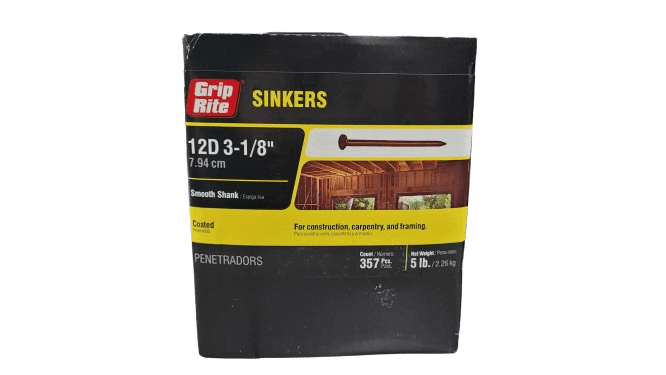 These Grip-Rite nails are used for framing and general carpentry. They are vinyl coated to make driving into wood easier. Checkered countersunk head designed to sink flush with surface.