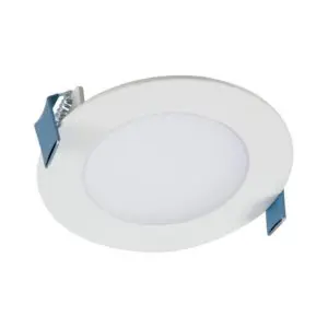 The Halo HLB4 Round Series is a complete 4 in. ultra-thin direct mount downlight designed for use in new construction, remodel and retrofit installation, without needing a housing or j-box. This HLB emits 735 Lumens at 3000K soft white light. This product features an LED driver that offers 120-Volt dimming capability. The HLB4 lens provides uniform illumination and wet location listing.