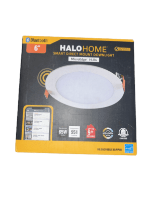 The HALO HOME HLB6 Selectable Series is a complete ultra-thin direct mount downlight that connects to the HALO HOME Bluetooth Mesh network with no hub required. At the flick of a switch, you can adjust white tuning between 5 color temperatures ranging from warm (2700K) to daylight (5000K) prior to installing into your ceiling. This module is designed for use in new construction, remodel and retrofit installation, without needing a housing or j-box. This product features an LED driver that offers 120-Volt dimming capability. The HLB 6 lens provides uniform illumination and wet location listing.