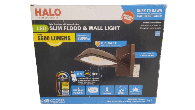 The Halo Outdoor ARFL LED Slim Wall & Flood light is a family of versatile floodlights are designed to provide maximum light output in a modern slim form factor that can look good in residential and commercial applications. Slim & Modern Design. This floodlight can be either used as a Switch Activated floodlight or Dusk to Dawn by using the selectable button on the remote control.