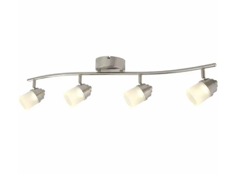Hampton Bay LED track lighting is designed to complement any interior decor and save money. This kit comes with a curved bar and 4 modern shaped lights with frosted glass shades. This track lighting kit features a protective bushed nickel finish and the LED lights pivot and rotate to direct the light where it is needed most. The LED light engine produces the same light as (4) 40-Watt Halogen bulbs using only 25-Watt of electricity to save you money and there are no light bulbs to replace. These track lights are perfect for the living room, kitchen, bedroom and other rooms.