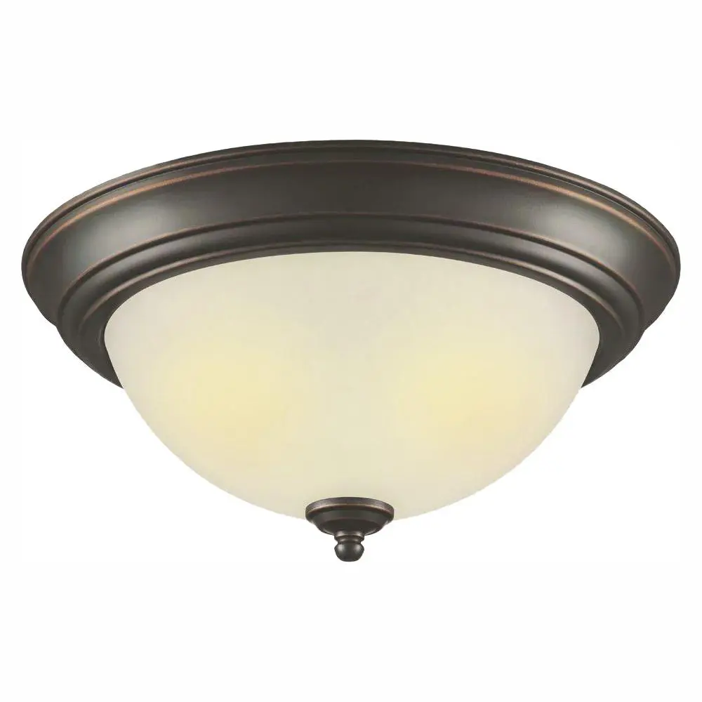 The Hampton Bay 2-Light Oil-Rubbed Bronze Outdoor Flushmount is well-designed and durable and can be used indoors or outdoors. This ceiling light features frosted glass and an oil-rubbed bronze finish for a transitional style that can fit a variety of decor. Uses 2-60-Watt bulbs (not included).