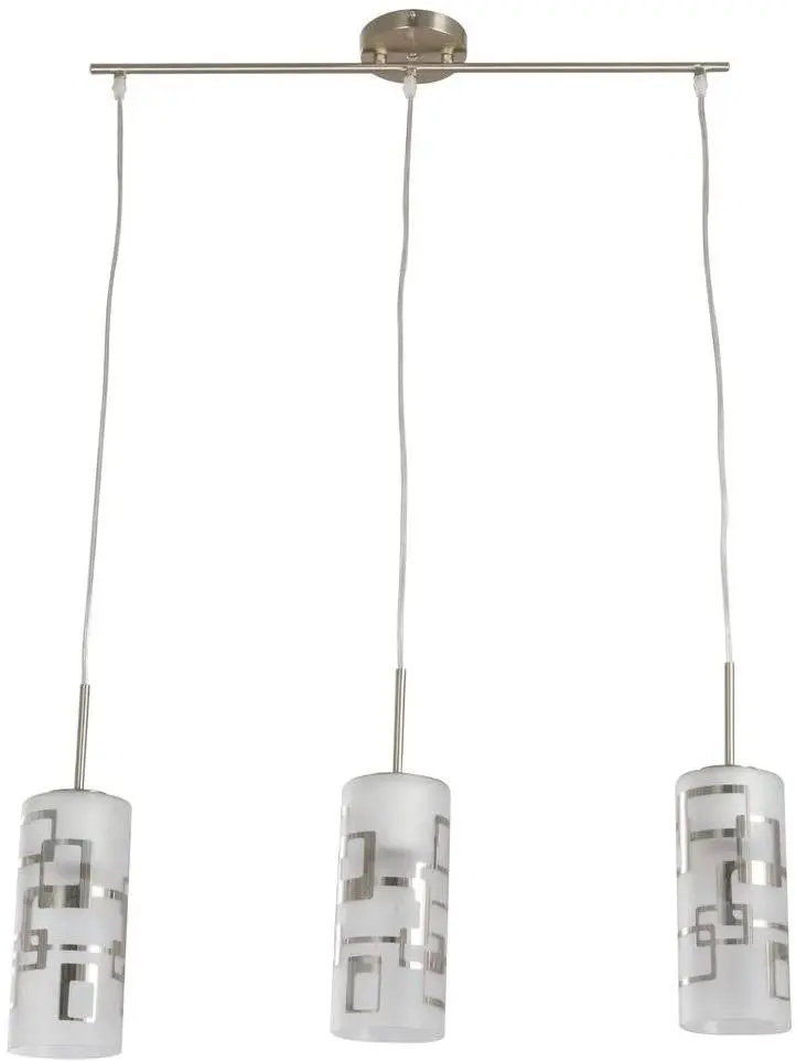 3-Light Brushed Nickel Ceiling Mini Pendant with Modern Pattern Etched White Glass Shades
