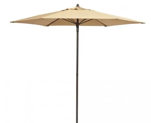 Add a pop of color to your deck or patio and stay cool at the same time with the 7.5 ft. Push-Up Patio Umbrella in Cafe. Featuring a polyester fabric canopy that is weather- and fade-resistant, this umbrella will provide lasting protection and charm. Steel ribs solidly support the canopy when it’s raised and a simple push-button mechanism makes it easy to close the umbrella when not in use.