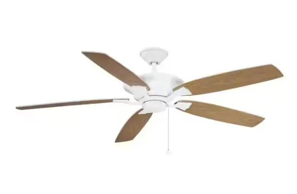 The Hampton Bay Ashburton 60 in. White ceiling fan is perfect when only air movement is needed. The Quick install blade system makes installing this fan very simple. Has reversible white/ bleached oak blades to coordinate with furniture or flooring. Can be installed as a flushmount or on a downrod.