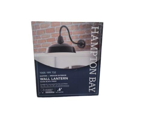 This outdoor glossy black wall lantern from Hampton Bay is uniquely designed with a contemporary feel. Its durable metal construction gives it a sophisticated look. The inside shade (around the light bulb) is painted white to add illumination. This barn lantern uses one 300-Watt medium base bulb (maximum)(not included). This uniquely designed fixture from Hampton Bay is the choice of discriminating yet value conscious homeowners who want to enrich their home.