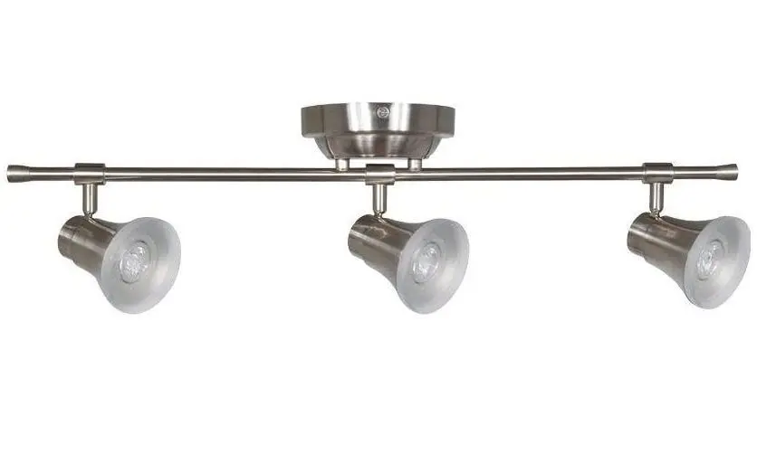 - The canopy, rail, and individual rail heads are plated satin nickel with a clear lacquer topcoat