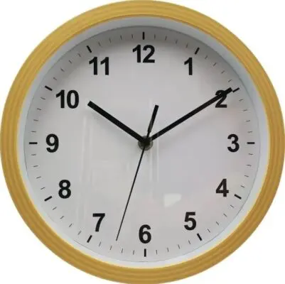 HDC – 10″ Plastic Wall Clock in Faux Wood w/ White Face & Black Dial
