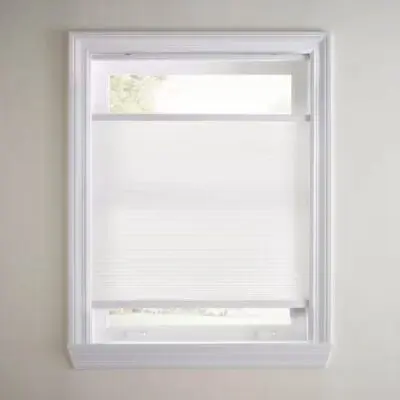 The Home Decorators Collection Snow Drift White Top Down Bottom Up Light Filtering Cellular Shade is a versatile window covering that provides the ability to raise the shade from the top or lower it from the bottom, offering greater flexibility in light and privacy control. The cellular shade has a honeycomb construction creates air chambers that insulate and shield your room from the outside heat or cold, helping lower your heating or cooling bills all year round. The cordless shade’s honeycomb-shaped cells are made with durable, spun lace fabric that forms crisp, clean pleats on the shade that keep your windows looking sleek.