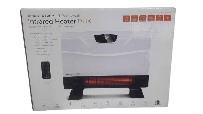 The Heat Storm Phoenix 1500-Watt, infrared floor to wall heater is a great solution for any bedroom or small room where there is not much floor space. At 1500-Watts, this heater will easily heat up your room without tripping your circuit breaker. Quickly mount onto your wall or attach the included feet to place it on the floor. Simply plug into any standard household outlet. This heater is safe to touch, even on the grill, making it an excellent choice for anyone. This unit has three power modes: full 1,500-Watt. half 750 -Watt, and auto mode automatically selects between half and full power. Each heater comes with our Patented Heat Exchanger HMS Technology that allows maximum heat efficiency from the infrared quartz bulbs without any heat loss from the unit.