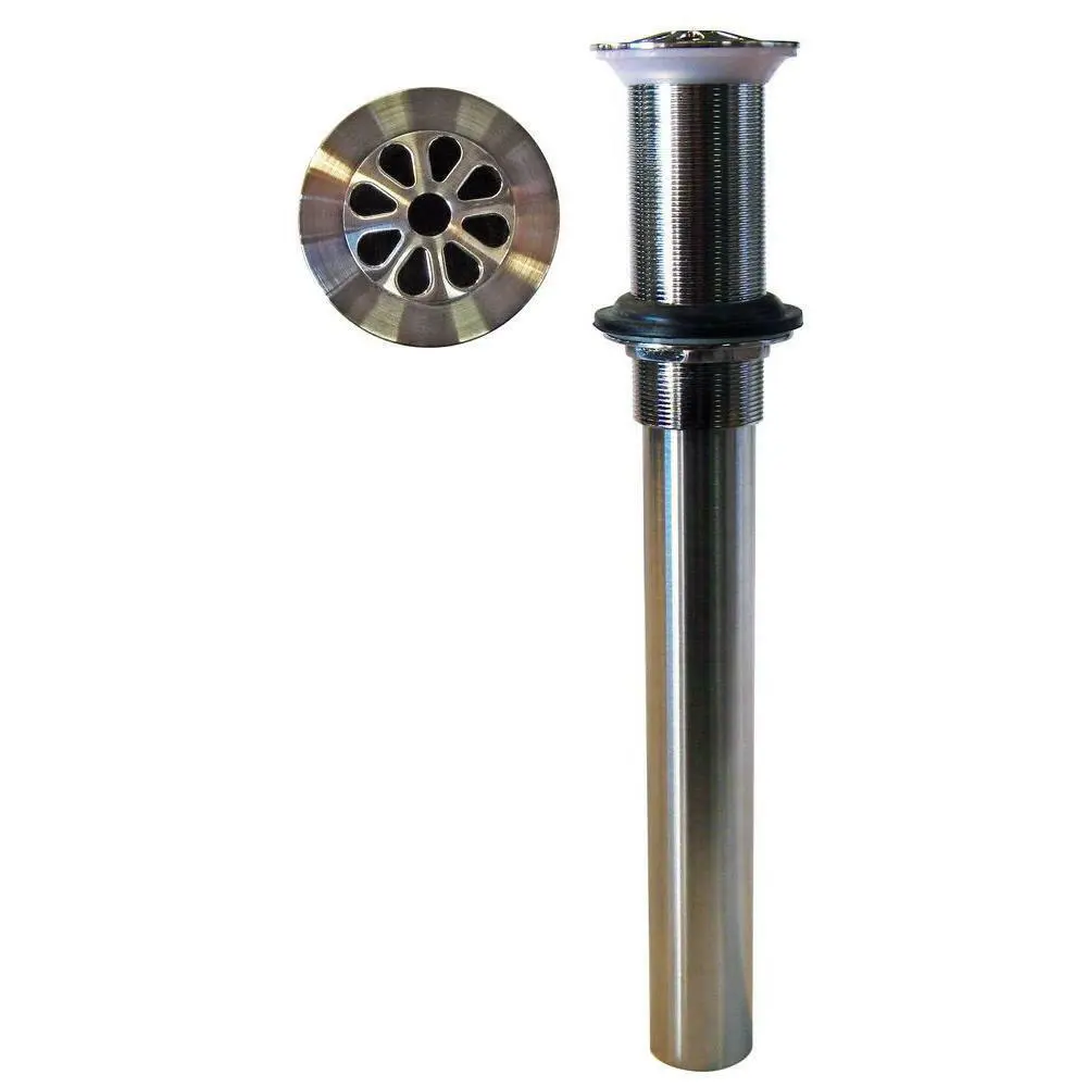 Westbrass Decorative High Flow Grid Drain with No Overflow Holes. Fits standard sink drains and features an ultra high flow grid style lavatory drain which prevents blockage. Fully finished for exposed installation. Fits 1-1/2 in. opening with 1-1/4 in. tailpiece and 3 in. threading for thick sinks. Brass construction.