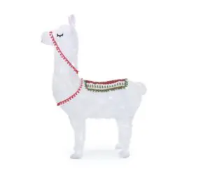 Crafted of durable metal is this 45 in. Tinsel Llama. A unique decoration item to add to your holiday scene, place it indoors or outdoors. The metal frame is covered in holiday tinsel and a fun, festive way to celebrate the holiday. This decorative item is weather-resistant to withstand the elements and the 80 cool white LED lights illuminate your space.