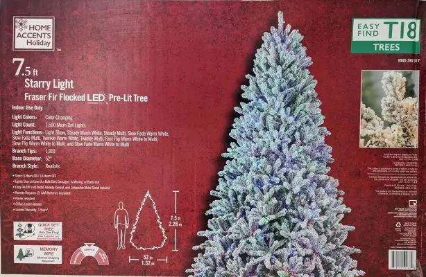 Add to your holiday decorations with this starry light frasier artificial fir christmas tree. The 1,500 color-changing LEDs fill your house with vibrant illumination, while the memory wire branch tips maintain their shape to support many seasons of enjoyment. An included remote control and a free remote control app make operation simple and convenient. This starry light frasier artificial fir christmas tree has a generous 7.5 ft. profile for a dominant display that sets your home apart.