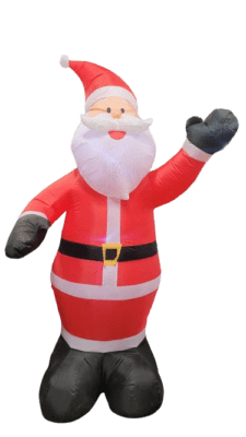 Create the North Pole in your yard with this 9-ft. Santa inflatable. You can instantly bring yuletide cheer with the self-inflating design and quickly take it down. Included ground stakes and tethers securely hold Kris Kringle up. For more merry making, it comes with built-in LEDs, adding sparkle. This weather-resistant inflatable plugs in for steady power.
