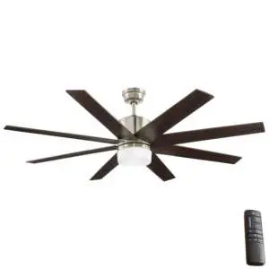 The Zolman Pike 60 in. ceiling fan from Home Decorators Collection is as innovative as it is beautiful. This modern, great room fan includes a powerful DC motor for improved performance and energy savings when compared with standard AC motor fans. The Kingsbrook also includes an integrated LED light kit which adds to its energy efficiency and is virtually maintenance free with no bulbs to replace. Control is conveniently placed at your fingertips with a feature-rich remote control that operates the fan’s 9 speeds and airflow direction. The remote also features a Comfort Breeze setting that will randomly alternate fan speeds to create an organic breeze effect.
