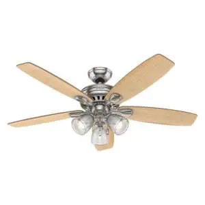 The Highbury is a 52 in. fan with wide appeal. The LED bulbs offer maximum energy efficiency while the task light fixture allows them to brighten the whole room. Soft, rounded lines throughout the fan’s body, blades, and glass provide a graceful, casual style that fits right in with almost any large room.