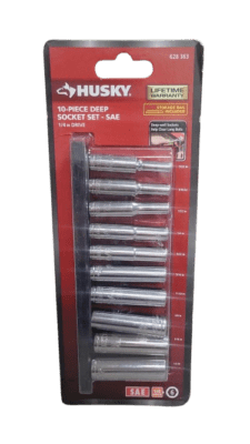 Husky 1/4 in. drive deep sockets are forged from Chrome Alloy alloy steel and heat treated for outstanding strength and wear protection; providing the durability for a lifetime of hard use. Each socket features chamfered lead-ins for quick and easy placement onto fasteners every and every time. Husky sockets are designed to stand up to the toughest jobs that the weekend DIYer or professional mechanic can throw at them.