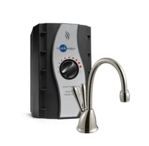 The InSinkErator Involve 2-Handle Hot/Cool Water Dispenser Faucet System in Chrome comes with a 2/3 Gal. stainless-steel tank to deliver up to 60 cups of near-boiling water and cool drinking water per hour. The faucet offers a dual-handle design with separate handles for hot and cold water. The faucet features durable metal construction, a mid-arc spout and easily adjusted temperature control. This faucet system is designed for single-hole installation.