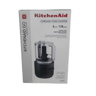 The power to make. The power to move. Create anywhere using the KitchenAid Go™ Cordless Food Chopper, with 5 cup bowl. Powered by a rechargeable 12v MAX removable battery (sold separately, model KRB12), the new cordless food chopper delivers 25 minutes of continuous run time* and performance, so you can cook wherever, whatever, and however you choose. *Maximum initial battery voltage (measured without a workload) is 12 volts. Nominal voltage is 10.8. Actual run time will vary based on recipe and/or attachments used. Battery life impacted by factors such as battery age and use.