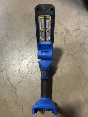 Be prepared to use this Kobalt 24-volt mechanics light for more that just automotive purposes. This will now be your most versatile light in your tool collection. The powerful LED light has 700 lm on high, a 90° pivoting head, a 300° rotating head, and a 160° field of light. This light will run for up to 10 hours using a Kobalt 24-volt 2.0 Ah battery (not included). It folds compact for easy transport, and the hang-hook rotates 360° then telescopes into the tool for easy storage. It has 2 sets of built-in magnets for under-hood applications. This light is compatible with all Kobalt 24-volt batteries, which are sold separately.
