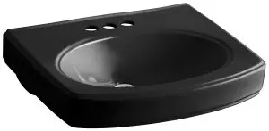 The KOHLER Pinoir 22 in. Pedestal Sink Basin in Black delivers box-band lines and simple, double-ridge edge detailing for an attractive look for any lavatory. The space-saving design and transitional lines allow this pedestal sink to coordinate with a variety of setups and the vitreous china construction ensures lasting beauty and durability.