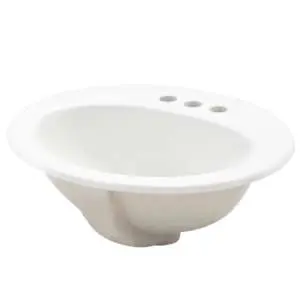 The raised rim on this Pennington oval bathroom sink will minimize the amount of water that splashes over the edge, keeping your countertop pristine and residue-free. This self-rimming white basin simply uses the force of gravity for installation-its outer edge resting on the rim of a cutout in your vanity counter that requires only a sealant to finish the job. Select this KOHLER model to pair with a 4 in. centerset faucet of your choice and give your vanity a significant upgrade for minimal expense.