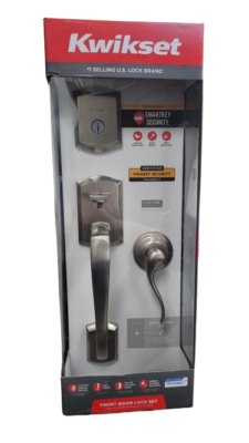 The Prescott handle set has an elegant but modest appearance that will bring charm to any home. With traditional contours that provide an attractive look and comfortable feel when entering the front door. The latch bolt is operated by the thumb piece on the outside and the grip on the inside. The deadbolt is operated by a key on the outside and a thumb turn on the inside. The crisp, clean appearance of the Satin Nickel finish adds to the overall look of the product and brings a modern feel.