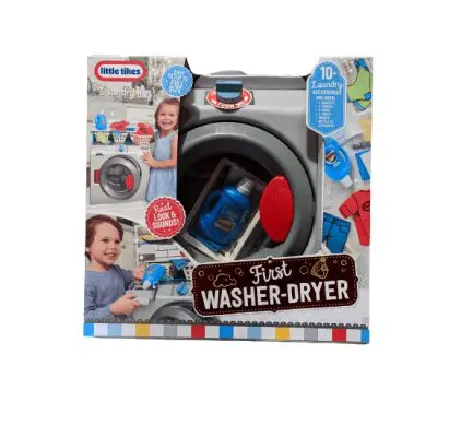 This interactive toy washer-dryer is designed so kids can pretend they’re doing laundry using the real thing for hours of pretend play fun
