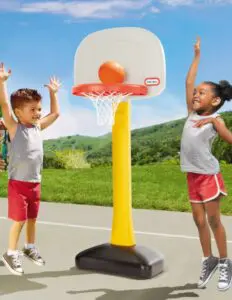 Your little one will start learning sports and active play early with this TotSports basketball hoop and basketball set by Little Tikes.