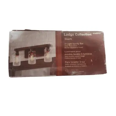 This stylish vanity light from the Ozark collection adds the perfect touch of charm and rustic appeal to your bathroom remodel. Features wavy textured clear glass for a beautiful finishing touch. This fixture features quality craftsmanship and beautiful distressed walnut finish and warm bronze finish to add warmth, beauty and functionality to your home for years to come.