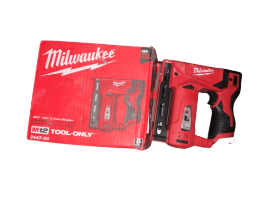 The Milwaukee M12 3/8 in. 12-Volt Cordless Crown Stapler delivers a true hand tool replacement. The 2447-20 is designed to drive a range of 3/8 in. flat crown staples (1/4 in. to 9/16 in.) through an array of materials and substrates. At just 3.0 lbs. and 7.5 in. L the compact design allows for great access into tight spaces and convenient tool belt portability. An easy to squeeze trigger design significantly reduces fatigue associated with traditional hand staplers. Integrated sequential and contact actuation trigger design provides increased productivity and seamless changing between firing modes. The 2447-20 is compatible with all Milwaukee M12 batteries