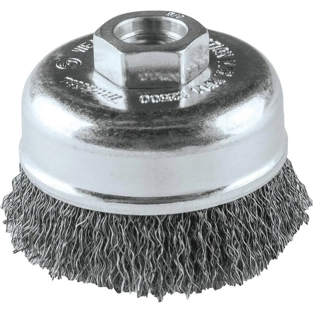 Makita Crimped Wire Cup Brushes are designed to work with angle grinders for a variety of material removal applications. The durable carbon steel wire construction is engineered for long service life. It is ideal for flat or irregular surfaces and edges.