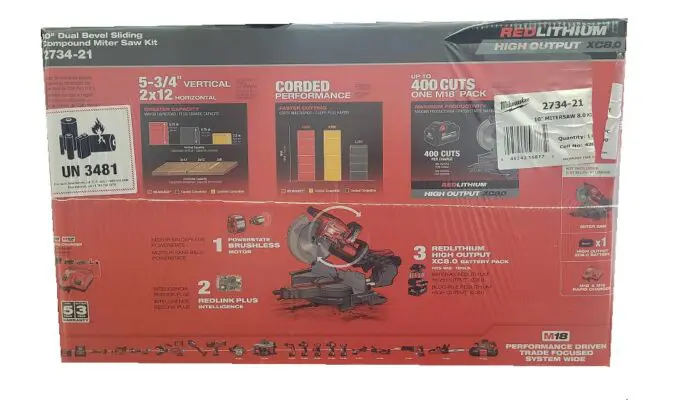 The M18 FUEL 10 in. Dual Bevel Sliding Compound Miter saw was designed to meet the demanding needs of professional carpenters and remodelers. Delivering greater capacity than many corded 10 in. sliding miter saws and the POWERSTATE Brushless motor delivering corded cutting performance. The 2734 provides users a solution to replace their corded miter saws. The M18 REDLITHIUM XC 8.0 Battery battery pack delivers up to 400 cuts per charge making the saw capable of lasting an entire day on site with only 1-pack. Premium features like an adjustable stainless steel detent plate, cam locking miter system, easy access bevel adjustment lever and both a detent override lock and chop lock lever located on the front of the tool. The M18 FUEL miter saw is designed for easy operation and repeatable, accurate cuts.