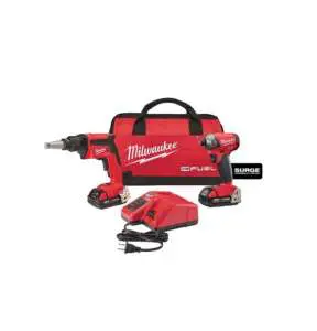 The 2896-22CT M18 FUEL Cordless 2-Tool Combo Kit includes the best performing Drywall Screw Gun and 1/4″ Driver Kit on the market. Included is the M18 FUEL Drywall Screw Gun a fully corded replacement unit. With 4,500 RPM’s the tool is faster than corded. With AUTO START mode the motor automatically starts on contact with drywall which results in less noise between screws and 3X longer run time than other cordless units. Also included is the M18 FUEL SURGE 1/4 in. Hex 1/4″ Driver which is the quietest cordless fastening solution on the market. It provides 50% quieter operation, 3X less vibration for smoother operation and faster driving speeds compared to standard impacts. The motor delivers 0-3,000 RPM with constant power output to drive screws faster. The 4-Mode DRIVE CONTROL provides greater control over output speed and power for greater versatility.