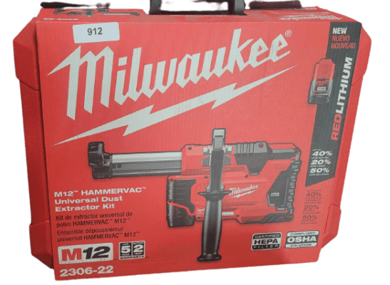 The Milwaukee 2306-22 is a 12-Volt cordless Universal Hammer Vac Dust Extractor Kit. The Kit Includes the 2306-20 HammerVac, 2 Red Lithium Batteries, a Charger and carrying Case. The Hammer Vac can be used with most SDS plus Rotary Hammers and is the lightest in its class. As a cordless Hammer Vac the 2306-22 will reduce user fatigue and increase productivity.