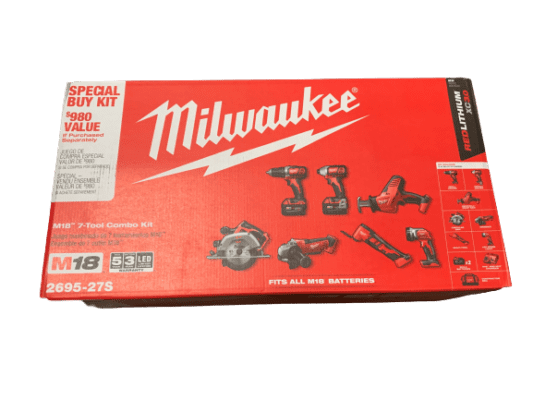 The MILWAUKEE M18 7 Piece Combo Kit features an M18 ½” Drill Driver, the most compact in its class to access the tightest work spaces while delivering users 500 in-lbs of torque and up to 1,800 RPM. The M18 ¼” Hex Impact Driver offers the best power to size ratio among like competitors with up to 2,750 RPM, 3,450 IPM and 1,500 in-lbs of fastening torque for class-leading performance. The M18 6-½” Circular Saw has a 3,500 RPM motor that easily and quickly cuts tough material such as LVL headers. The M18 HACKZALL features a one-handed design for superior control and versatility with the ability to perform fast cuts through a wide range of material such as wood, metal and PVC. The M18 4-½” Grinder is the only cordless option on the market that has the user-preferred paddle switch for comfortable operating in various positions. The M18 Multi-Tool cuts up 50% faster and delivers up to 2X more cuts per charge than the competitors. The M18 LED Worklight has a 35° rotating head to easily direct the 100 Lumens of TRUEVIEW High Definition Output to the desired work area. The two included M18 XC 3.0 Batteries deliver more runtime, power and speed to the power tools and worklight in this kit. Also included in this 7 piece power tool kit is an M18/M12 Multi-Voltage Charger, a contractor bag, carbide saw blade, grease type y tub, T27 guard, wrench, adapter, steel blade for wood, sanding pad and sandpaper in varying grits.