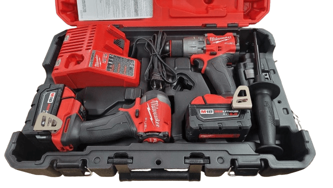 The MILWAUKEE M18 FUEL 2-Tool Combo Kit has the Most Powerful Drill, including AutoStop Control Mode for enhanced safety and the Fastest Driving Impact Driver. Includes an M18 FUEL 1/2″ Hammer Drill, M18 FUEL 1/4″ Hex Impact Driver, (2) M18 REDLITHIUM XC 5.0Ah Battery Pack, with an M18/M12 charger and carrying case. The M18 FUEL ½” Drill Driver is the Industry’s Most Powerful Drill and Most Compact solution. The POWERSTATE Brushless motor delivers the most power under load to complete 2-9/16″ Self-Feed holes in dense materials for increased productivity and capability. At only 6.9″ in length, this is the most compact drill in its class. The AutoStop Control Mode offers enhanced safety for the user by preventing over-rotation in a bind-up with the best reaction time in the industry. The M18 FUEL ¼” Hex Impact Driver is the Most POWERFUL and FASTEST DRIVING impact driver, featuring ULTIMATE TRIGGER CONTROL. The POWERSTATE Brushless motor delivers unmatched power for a full range of capabilities to complete the widest variety of applications. Increase productivity on the jobsite with the fastest driving speed without sacrificing power or control. REDLINK PLUS intelligence delivers ULTIMATE TRIGGER CONTROL by providing smooth acceleration for small fasteners to prevent stripping of screws or damaging of materials. The M18 FUEL 2-Tool Combo kit is part of the M18 system which is fully compatible with over 200+ solutions.