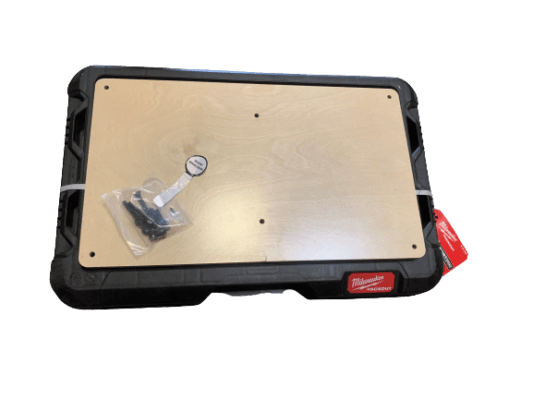 The MILWAUKEE PACKOUT Customizable Work Top is constructed with impact-resistant polymers and 1/2 in. marine grade wood top that provides users with a durable, portable work surface for assembly and writing tasks. The customizable worktop has a 50 lb. weight capacity and a fastener-ready design which allows users to attach vises, chargers, and a variety of other items to the top of their PACKOUT stack for easy and secure transport. The PACKOUT Modular Storage System is the industry’s most durable and versatile storage system.