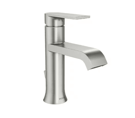 Add a splash of contemporary style and modern elegance to your bathroom with the MOEN Genta Single Hole Single Handle Bathroom faucet. The faucet’s clean lines, high-arc spout and reflective chrome finish provide a refined, upscale look. The unique spout delivers a smooth ribbon of cascading water, controlled by an easily adjustable 1-handle lever that was designed to adapt to your needs.