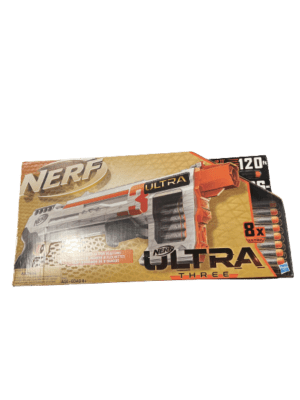 The Nerf Ultra Three blaster features pump-action blasting and an 8-dart internal clip. Show your dart-firing skills as you pump the priming handle and press the trigger to fire 8 darts in a row before it’s time to reload. On-board storage for 4 darts (additional darts sold separately). Includes 8 Nerf Ultra darts that are compatible only with Nerf Ultra blasters. Send darts flying through the air up an awesome to 120 feet (36 meters)! Eyewear recommended (not included).
